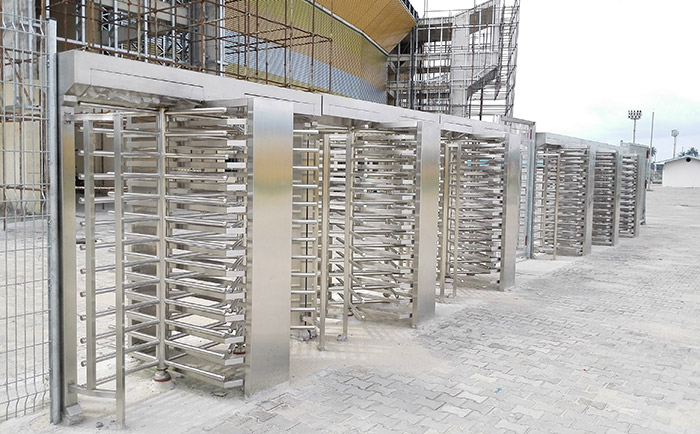 尼日利亚哈科特港体育馆使用了西莫罗双通道十字全高转闸CPW-222BS,双通道设计,体积高大,防止攀爬闯入,满足无人值守管理。