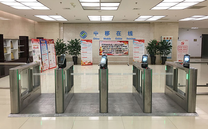 中国移动各分公司安装了人脸识别摆闸,采用人脸识别的方式进行员工、访客出入管理,人脸识别是真人检测,无法伪装,大大提高了办公楼的安全等级,并且是非主动性、非接触性、无卡无证式验证,通行体验更好。