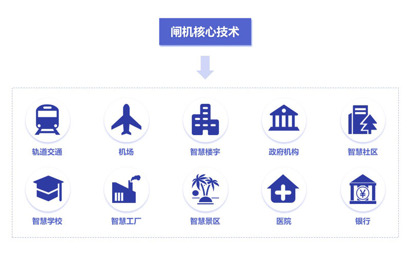 闸机常应用于机场、地铁站、高铁站、写字楼、政府、小区、景区、工厂、学校、医院、休闲娱乐场馆等场景,不同场景的闸机有不同的应用特点,闸机所需实现的功能也有差异。除了钻研通用于各种场景的闸机技术外,我们还钻研不同场景闸机所需要的特殊技术,以满足各个场景的差异化需求,从而形成我们的独特优势。