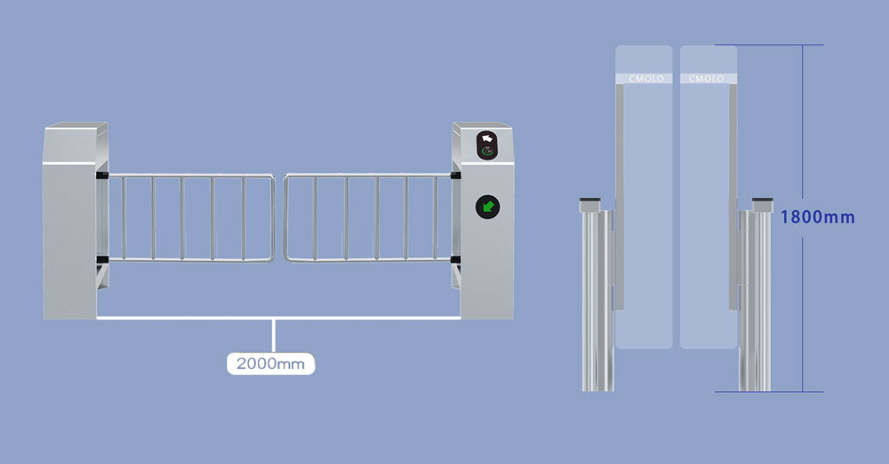 10. 宽通道&高阻拦体技术,优化机芯结构、载荷更大,能够负载又宽又高又重的阻拦体,比如可以实现2米通道宽,1.8米高阻拦体,从而满足那些需要携带婴儿车、轮椅、大件行李、小推车、自行车的场景的需要以及阻止行人跨越钻爬闸机的有高安保需求的场景。