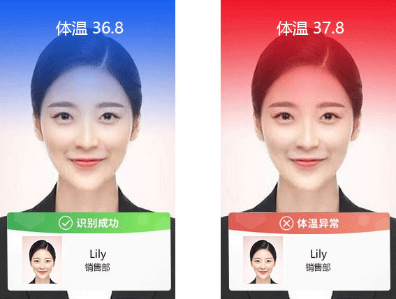 方案二:人脸识别/刷卡核验+体温检测,适用于企业、学校、工厂等人员比较固定的场景。