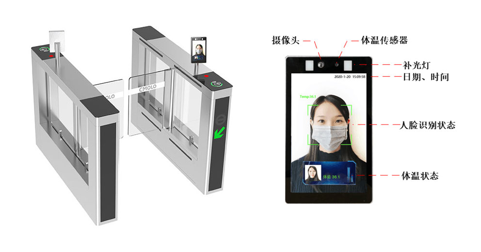 方案三:在现有闸机基础上,增加体温检测组件,适用所有场景。